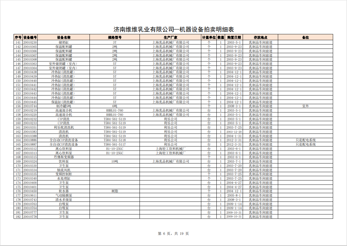 主要包含:牛奶生產(chǎn)設(shè)備、豆奶生產(chǎn)設(shè)備、利樂無菌灌裝設(shè)備、各型不銹鋼儲(chǔ)罐和發(fā)酵罐、鍋爐、烘干設(shè)備、空調(diào)、變壓器、配電設(shè)備、倉儲(chǔ)設(shè)備等。