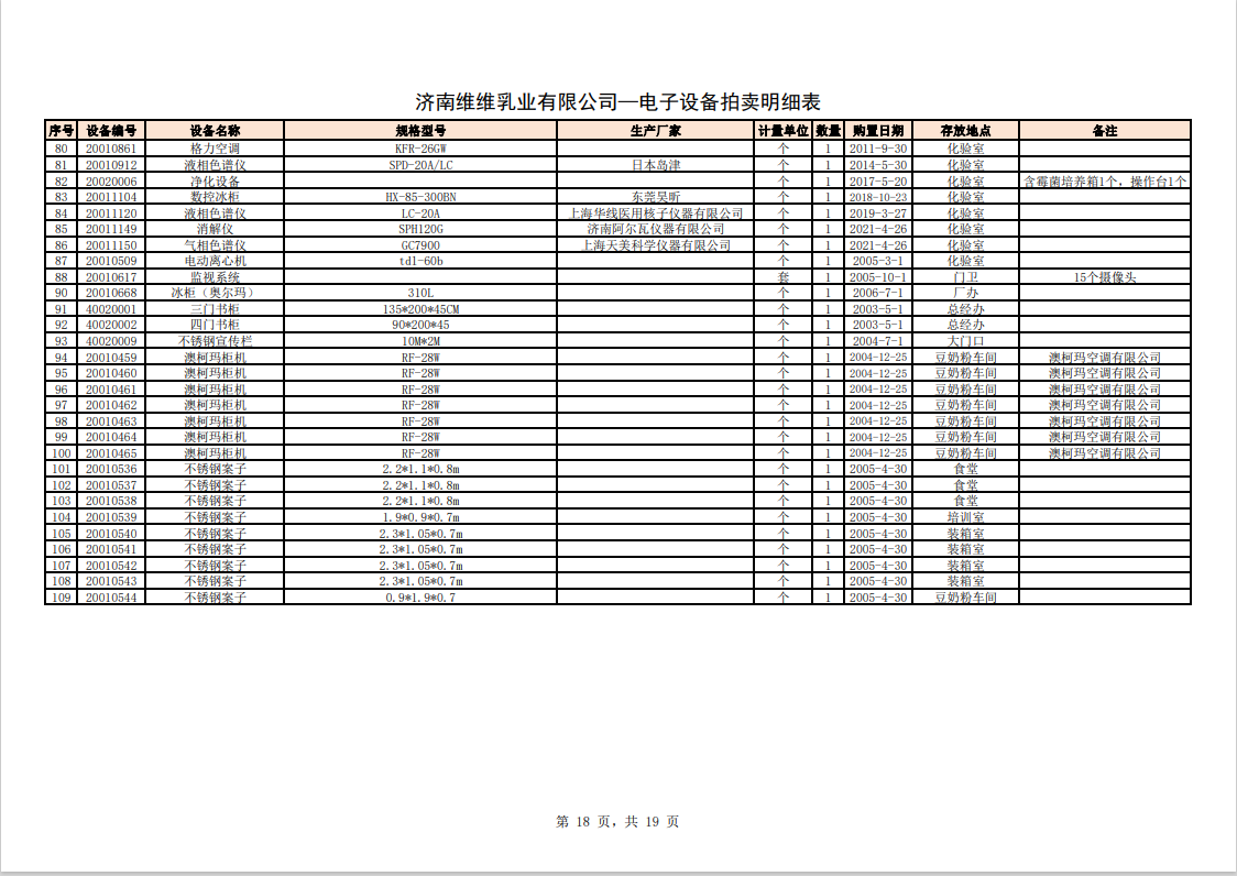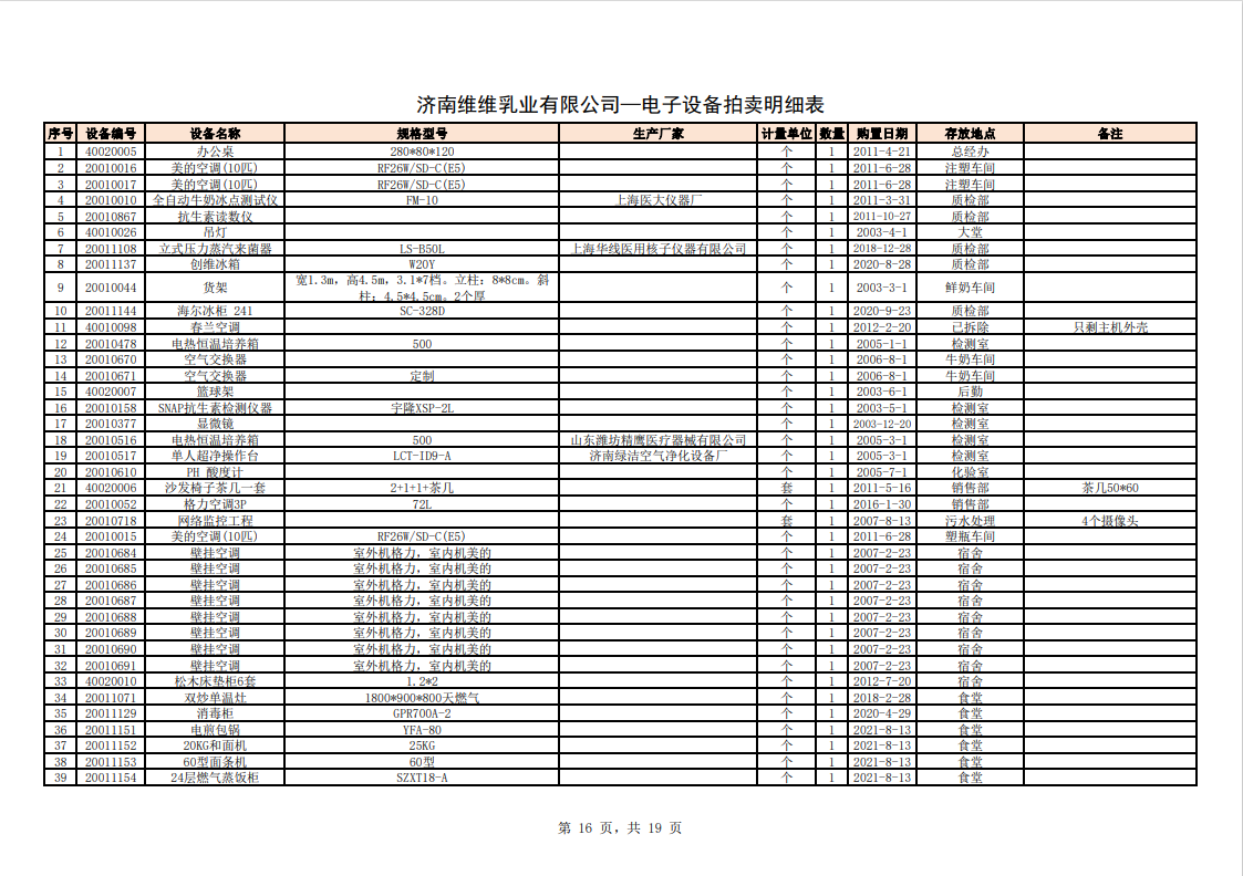 關(guān)注微信公眾號(hào)我公司受委托,定于2023年10月28日10時(shí)(網(wǎng)絡(luò)延時(shí)除外)在中拍平臺(tái)通過網(wǎng)絡(luò)競價(jià)方式公開拍賣:濟(jì)南維維乳業(yè)有限公司食品飲料生產(chǎn)加工設(shè)備及固定資產(chǎn)一批。