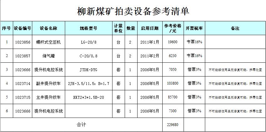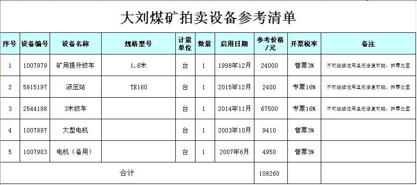 關(guān)注微信公眾號我公司受委托,定于2018年7月25日10時在徐州市中山南路55號副樓三樓本公司拍賣大廳公開拍賣:徐州市大劉煤礦、柳新煤礦的二手設(shè)備一批。