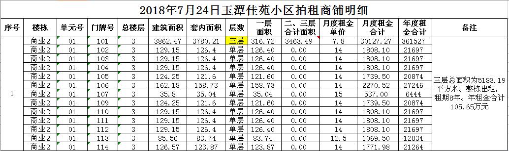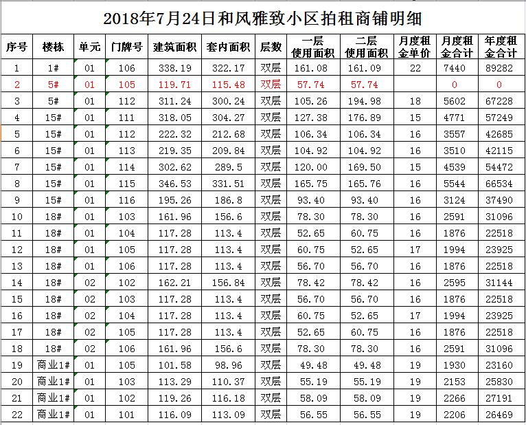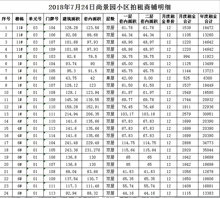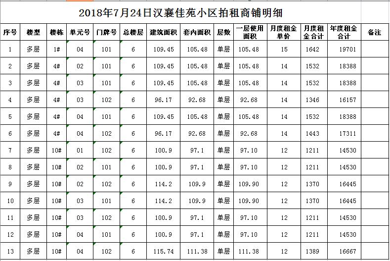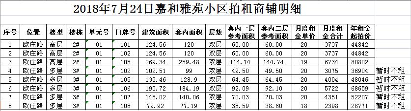 2018年7月24日門面房租賃權(quán)拍賣公告及拍品明細(xì)