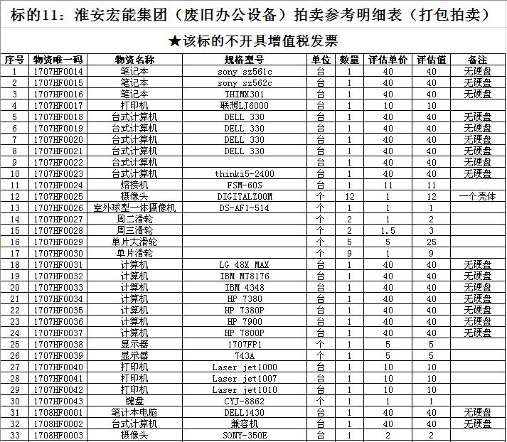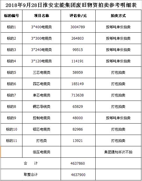 關(guān)注微信公眾號受淮安宏能集團(tuán)有限公司委托,我公司將通過中國拍賣行業(yè)協(xié)會網(wǎng)絡(luò)拍賣平臺以網(wǎng)絡(luò)競價的方式公開拍賣廢舊物資一批,主要包括:各型電纜,計算機(jī)、打印機(jī)等辦公用品(詳見拍品目錄)。