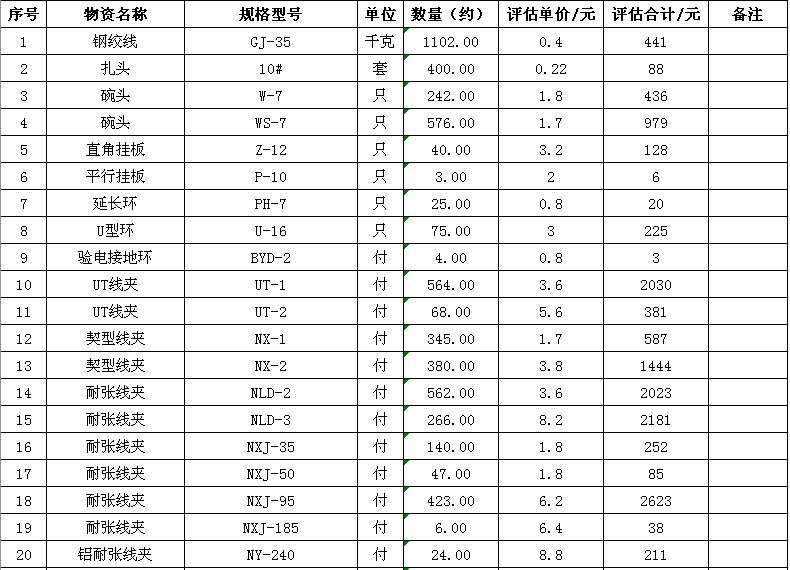 淮陰力源電力實(shí)業(yè)開發(fā)有限公司廢舊物資拍賣參考明細(xì)表