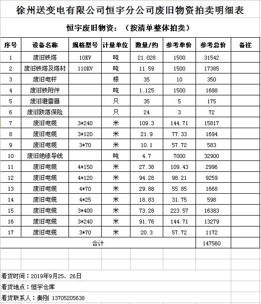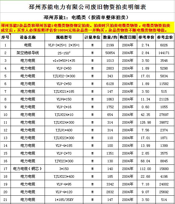 關(guān)注微信公眾號(hào)受委托,我公司將通過中國拍賣行業(yè)協(xié)會(huì)網(wǎng)絡(luò)拍賣平臺(tái)以網(wǎng)絡(luò)競(jìng)價(jià)的方式公開拍賣廢舊電力物資一批,主要包括:電纜、導(dǎo)線、廢舊鋼材、鋼芯鋁絞線、金具、雜品、機(jī)具、空調(diào)、辦公設(shè)備等。