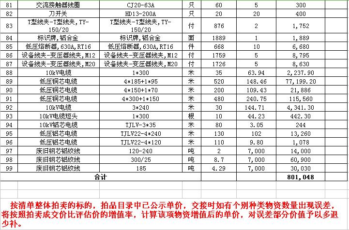 關(guān)注微信公眾號(hào)受委托,我公司將通過中國(guó)拍賣行業(yè)協(xié)會(huì)網(wǎng)絡(luò)拍賣平臺(tái)以網(wǎng)絡(luò)競(jìng)價(jià)的方式公開拍賣以下公司廢舊電力物資。主要包含:廢銅排下腳料、廢不銹鋼、辦公設(shè)備等;架空絕緣導(dǎo)線、電纜、金具、角鋼塔、鋼芯鋁絞線、開關(guān)、互感器、變壓器散件等。