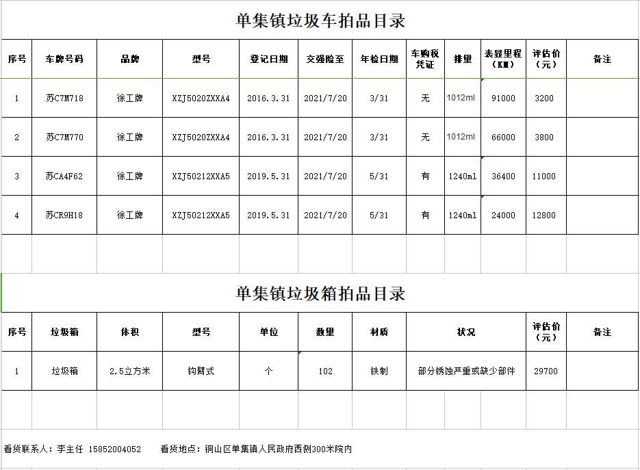 2、徐工牌鉤臂式垃圾車(chē)4輛及廢舊垃圾箱102個(gè)