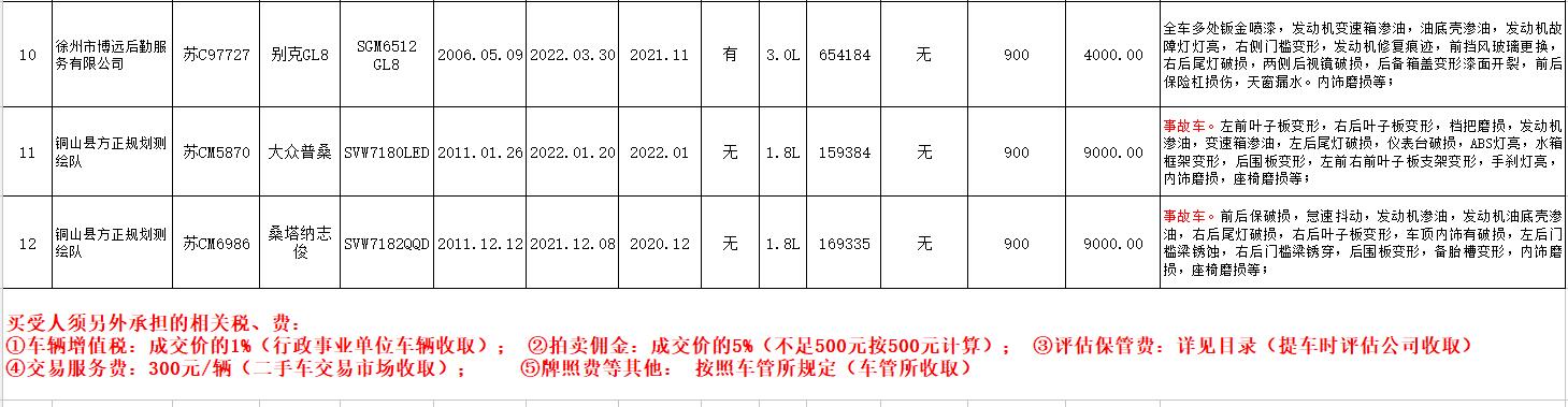 7月26日、27日在徐州銀地二手車交易市場(chǎng)展示。有意競(jìng)買者請(qǐng)持有效證件到我公司辦理報(bào)名手續(xù),并交納每輛車1萬(wàn)元保證金即可參拍,報(bào)名截止至7月27日16時(shí)。