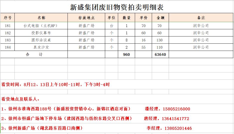 2、新盛集團(tuán)廢舊電腦、空調(diào)、復(fù)印機(jī)、廚浴設(shè)備、健身器材、辦公家具等物資。(保證金2萬(wàn)元)